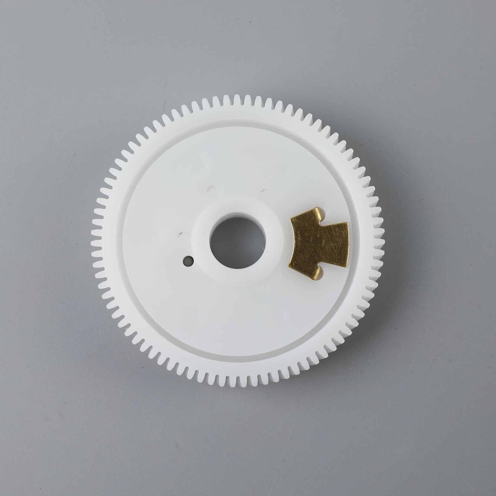 本公司生产的微电机精密注塑齿轮主要用于轿车电动雨刮器电机和电动玻璃升降器电机,该齿轮是电机中的要害零件。本公司生产的该塑料齿轮接纳美国杜邦公司的POM工程塑料,精密注塑一次加工成型,具有尺寸精度高、自润滑性好、啮合噪声低、使用寿命长、输着力矩大等优点,在海内处于领先职位。