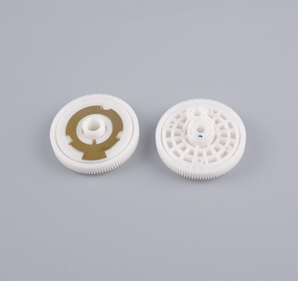 本公司生产的微电机精密注塑齿轮主要用于轿车电动雨刮器电机和电动玻璃升降器电机,该齿轮是电机中的要害零件。本公司生产的该塑料齿轮接纳美国杜邦公司的POM工程塑料,精密注塑一次加工成型,具有尺寸精度高、自润滑性好、啮合噪声低、使用寿命长、输着力矩大等优点,在海内处于领先职位。